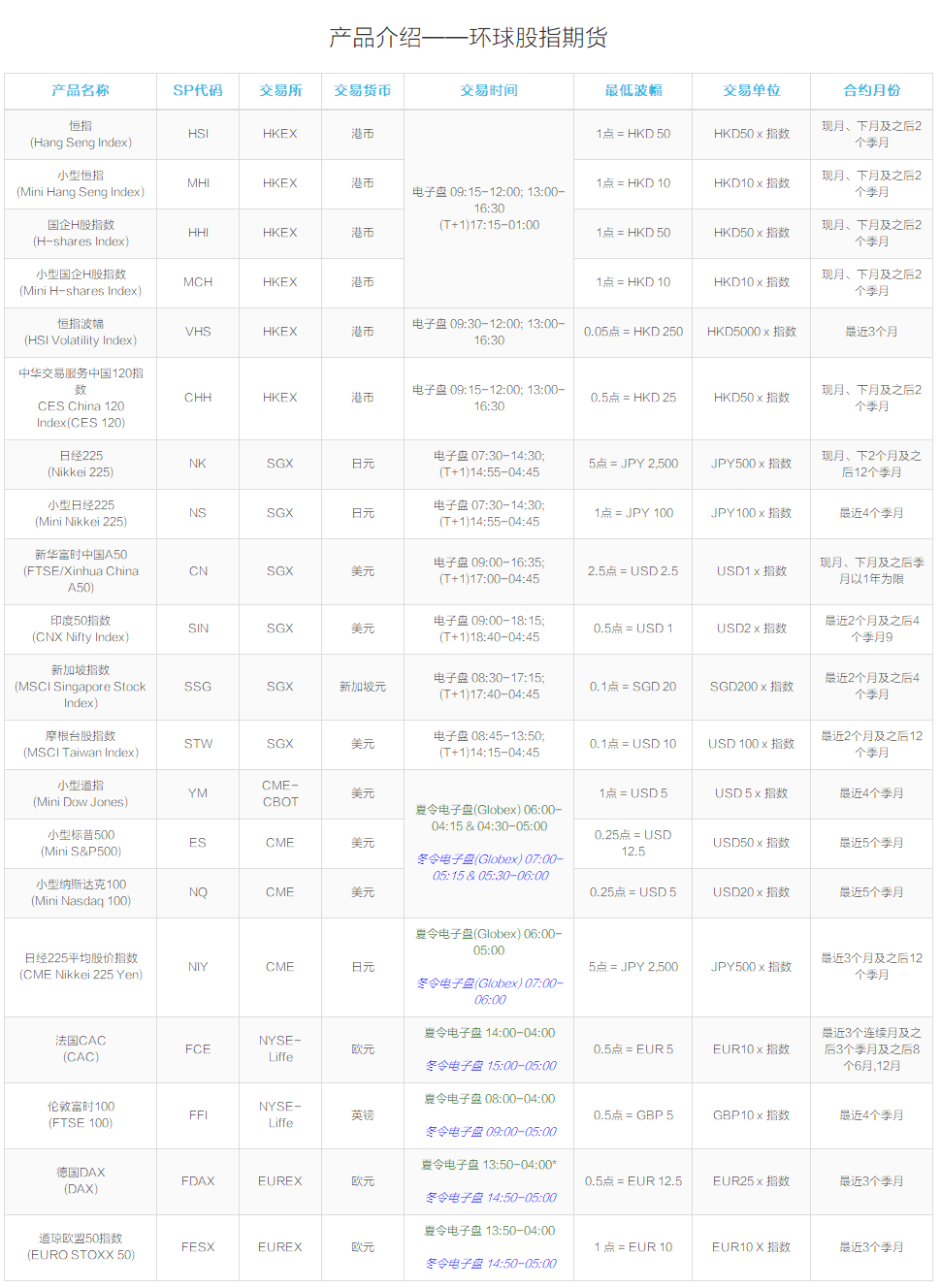 富士国际期货包括香港、纽约、芝加哥、伦敦、东京等;品种则包括所有能源、金属、货币、农作物、股市指数及利率金融产品